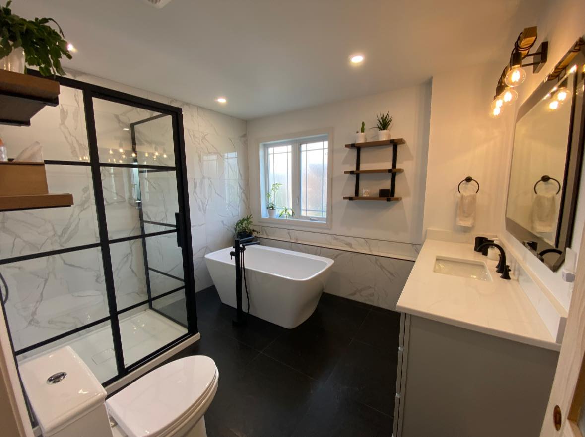 Nous nous spécialisons dans les rénovations de cuisine, salle de bain, sous-sol et autres espaces intérieurs.